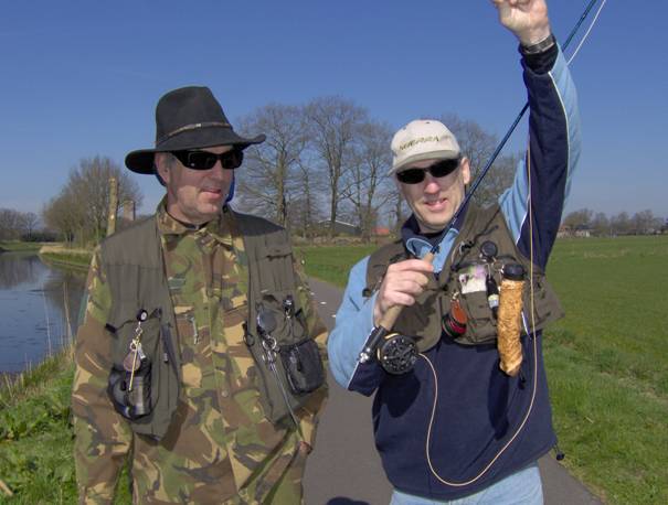 Na bijgekomen te zijn van het lachen hebben we in de midddag geprobeerd nog wat te vangen, Marcel wist nog een klein voorntje te vangen, later zijn we het met de droge vlieg gaan proberen maar hier is het nog te vroeg in het seizoen voor, dit leverde dan ook geen vangsten meer op.