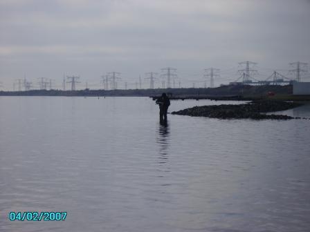 Nee, niets gevangen maar de enige aanwezige Noor in hun gezelschap kon blijkbaar de verleiding niet weerstaan om het OVM eens horizontaal te bekijken. Eenmaal gewaarschuwd door zijn nat pak besloten toch maar voorzichtig te waden.