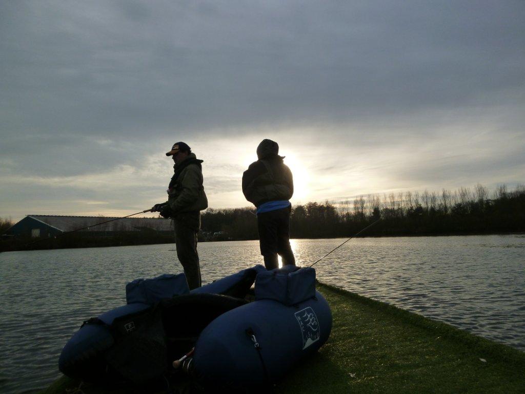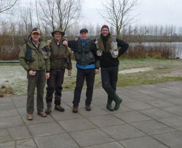 Vorst en dan de belly-boat in, gelukkig heb ik op het nieuws wel gehoord dat het vorst aan de grond is en met de belly boat zitten we op het water dus dat zal wel meevallen. Na een voorspoedige rit zie ik bij de Ronde Bleek de Mondeo van Gerrit al met de achterklep geopend staan, naast Gerrit komen ook Walter en Theo uit de Mondeo rollen.