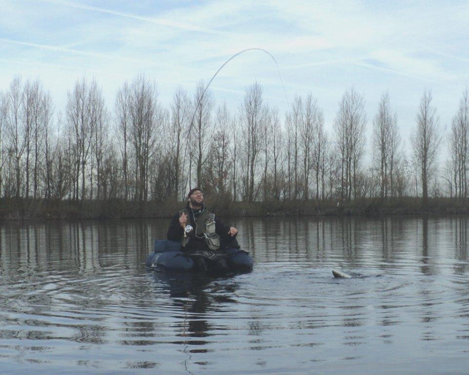 Altijd mooi om een vismaat te zien vangen, maar even later is het weer raak, als we al driftend verder gaan weet Gerrit zowaar de derde te vangen.