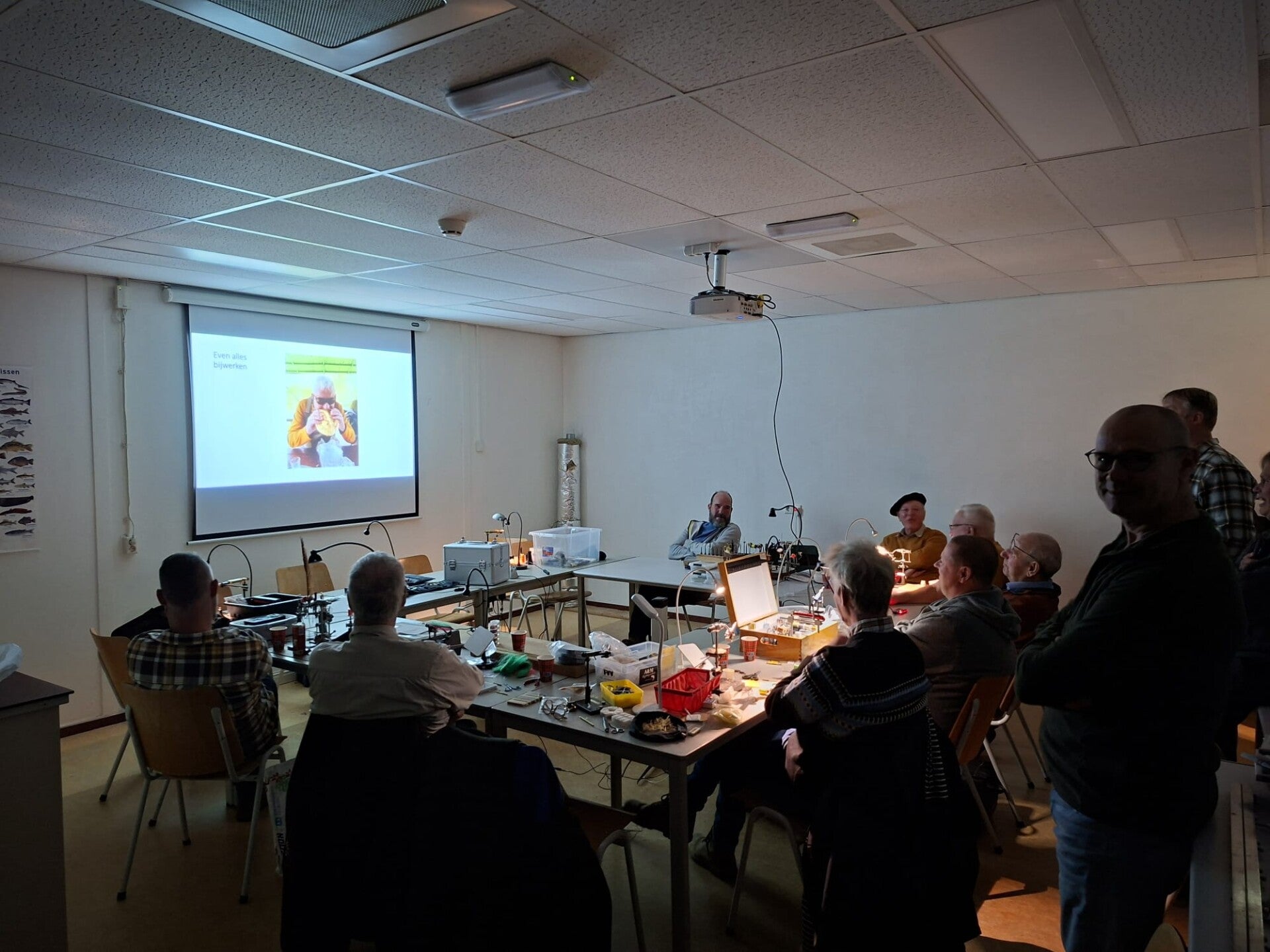 Tijdens onze bindavonden hebben we een vrije inloop en binden we gezamenlijk onze vliegen