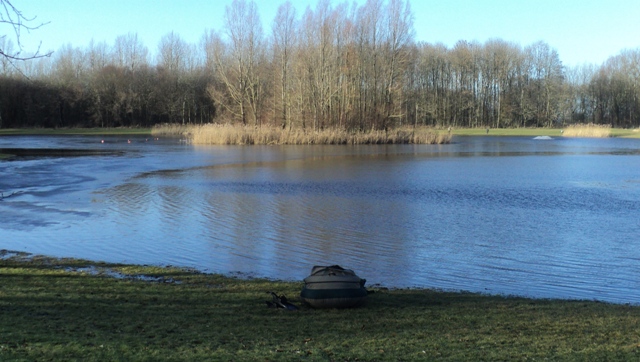 Zondagmorgen vol goede moed naar de Rassenbeekweg in Zeewolde, Jan had daar de koffie natuurlijk al klaar, snel een bakje doen en dan de Belly boat opblazen, van onze eerdere wintertrips wist ik dat het met de kou dan best meevalt. Hans en Gerrit stonden het material al in orde te maken, en even later kwam ook Jeffrey met de Belly boat opdagen. Langzaam loop ik achteruit het water in, ga zitten in de Belly boat en nee het zal toch niet waar zijn...................... gestaag voel ik het water in mijn 5 milimeter neopreen omhoog kruipen, een duidelijk geval van een gaatje in het waadpak. Tja en nu vraag ik mezelf af, het water uit en vanaf de kant vissen? Ach wat kan mij het schelen, ik blijf gewoon in de Bellly boat en zie dan wel hoelang ik het vol kan houden.