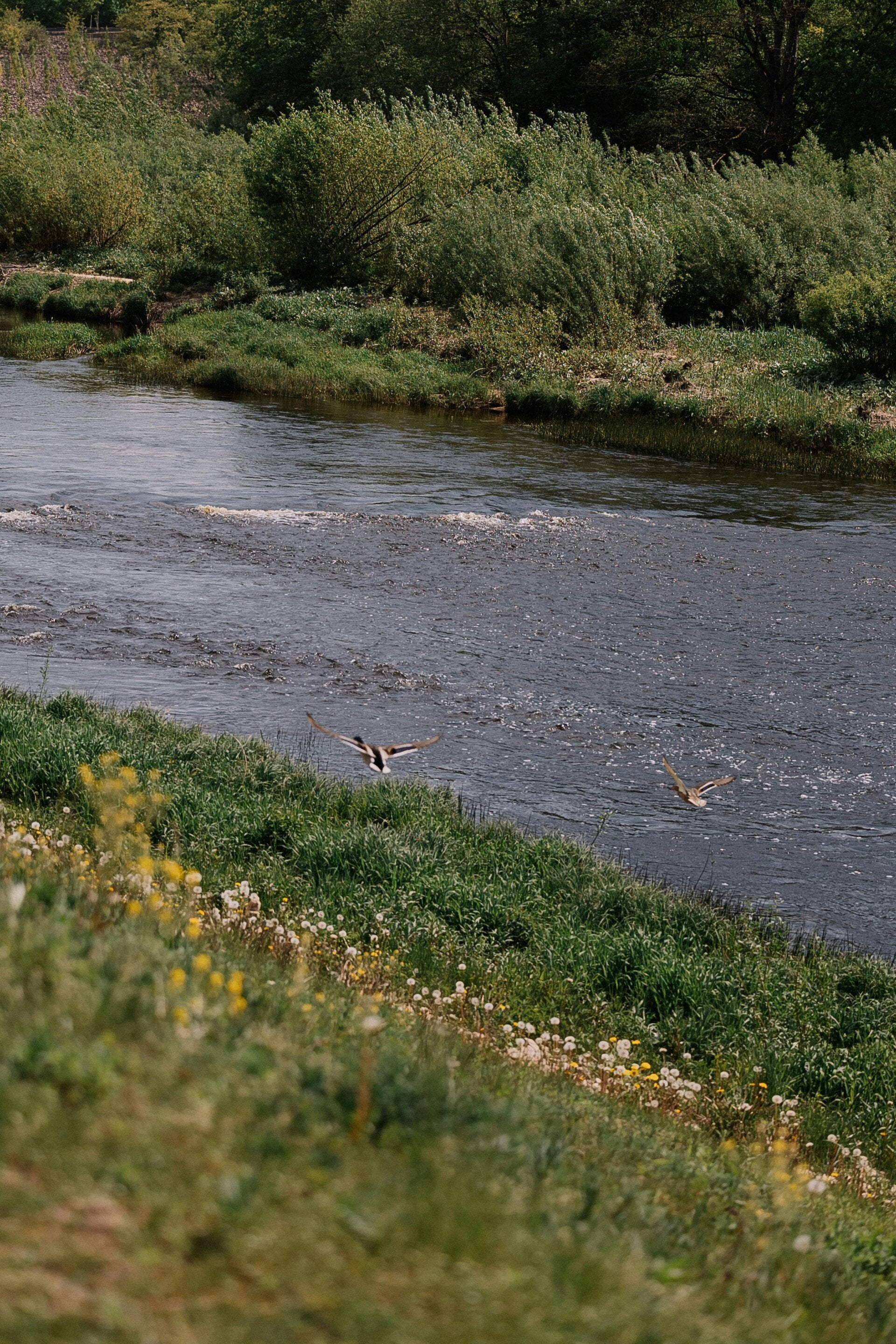 Aangekomen bij het stuk rivier waar we het vervolgens willen proberen, blijkt ook hier dat onze werptechniek het niet toelaat de uitnodigende overzijde te bevissen, zodat de hier geparkeerde forellen nog heel even moeten wachten tot in juni als waden is toegestaan. Maar hopelijk krijgen we het niet aan de stok met de nodige kanogangers, nu konden zij passeren zonder echt storend te zijn. Maar als we in juni midden in de rivier staan? Wij gaan er echter wel van uit dat het goed gaat, dus hou je gedeisd ook bij een verkeerde manoeuvre van zo’n onervaren bootsman.