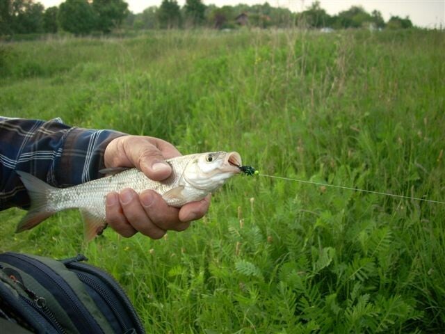 Even later is het dan toch raak een klein snoekbaarsje kon de verleiding niet weerstaan, nog wel even lastig landenmet zo`n lange leader maar hopelijk went dit snel.Helaas zien we verders geen aanbeten meer, Charlie, inmiddels ook even komen kijken (zonder hengel, kwam rechtstreeks van de opbouw van de Fly-fair af) adviseert nog om het even iets verder in het water te proberen om precies op de stroomnaad te kunnen vissen.