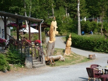 De vijfde versnelling maakte een vreemd geluid wat alsmaar luider werd naarmate je harder reed. Ton baalde als een stekker, maar gelukkig is hij de relaxedheid zelve (het komt zoals het komt). Na een half uurtje kwamen we aan op Camping Maka aan de rivier La Semois en beek Les Alleines. De eigenaren, een stel uit Nederland met hun kinderen, hadden hun droom waargemaakt met de aanschaf van de camping. Een goede keuze, want de plaatsen, het sanitair en het eten waren uitstekend. Verder had de ‘vrouw des camping’ een leuke dosis humor. Een goede keuze van Marcel!