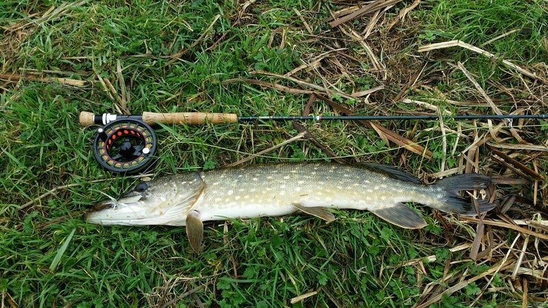 Elk uitstekend puntje, kruising of kom wordt bestookt. Dan toch ineens en toch ook weer onverwacht, zie ik de aanval door het opstuwen van het water en voor ik het weet staat mijn vertrouwde Sage SP hoepeltje. Door de tegendruk die ik uitoefen laat ze direct haar kunstjes zien om zich van het kleinood te ontdoen. Helaas voor haar, want ik weet intussen deze kunstjes aardig te pareren. Ondanks dat ze van de overkant moet komen duurt het maar een paar minuten voor ik haar met de kieuwgreep kan landen. Ik moet er wel even voor op mijn knieën maar dat doe ik graag. Een mooi polder snoekje van een centimeter of 75 maakt mijn morgen goed.